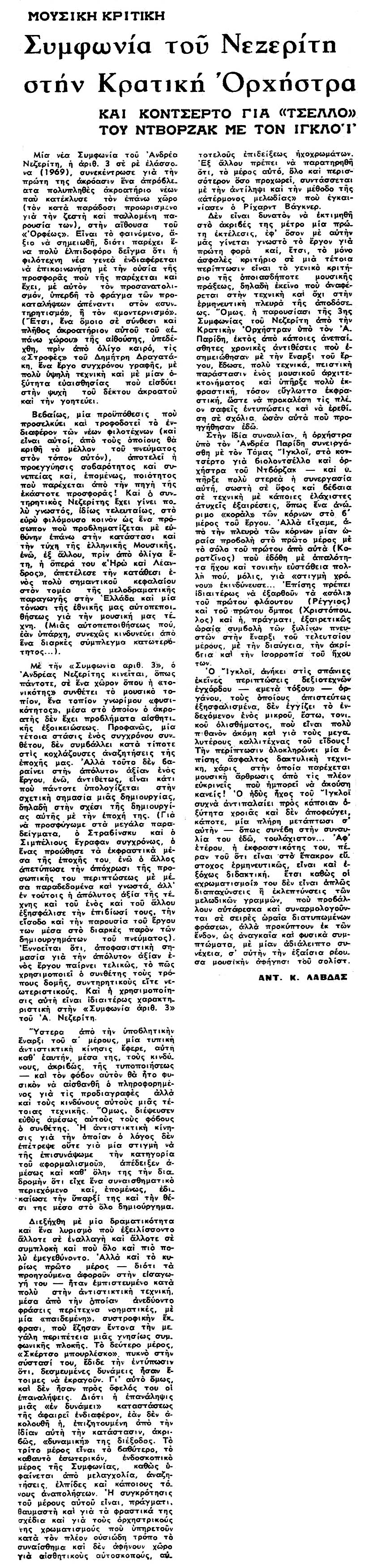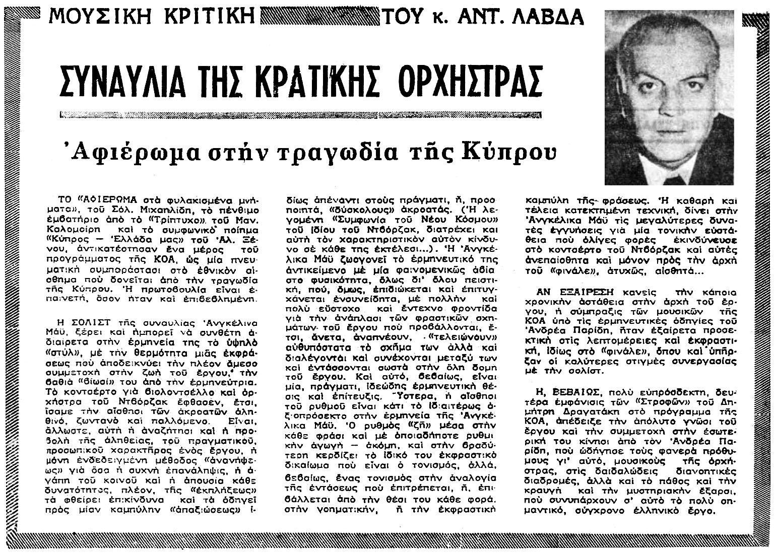 1974_12_20 Λυρική Μορφονιού Κωνσταντίνου Χωραφάς Κρατική Ορλόφ Αγραφιώτης