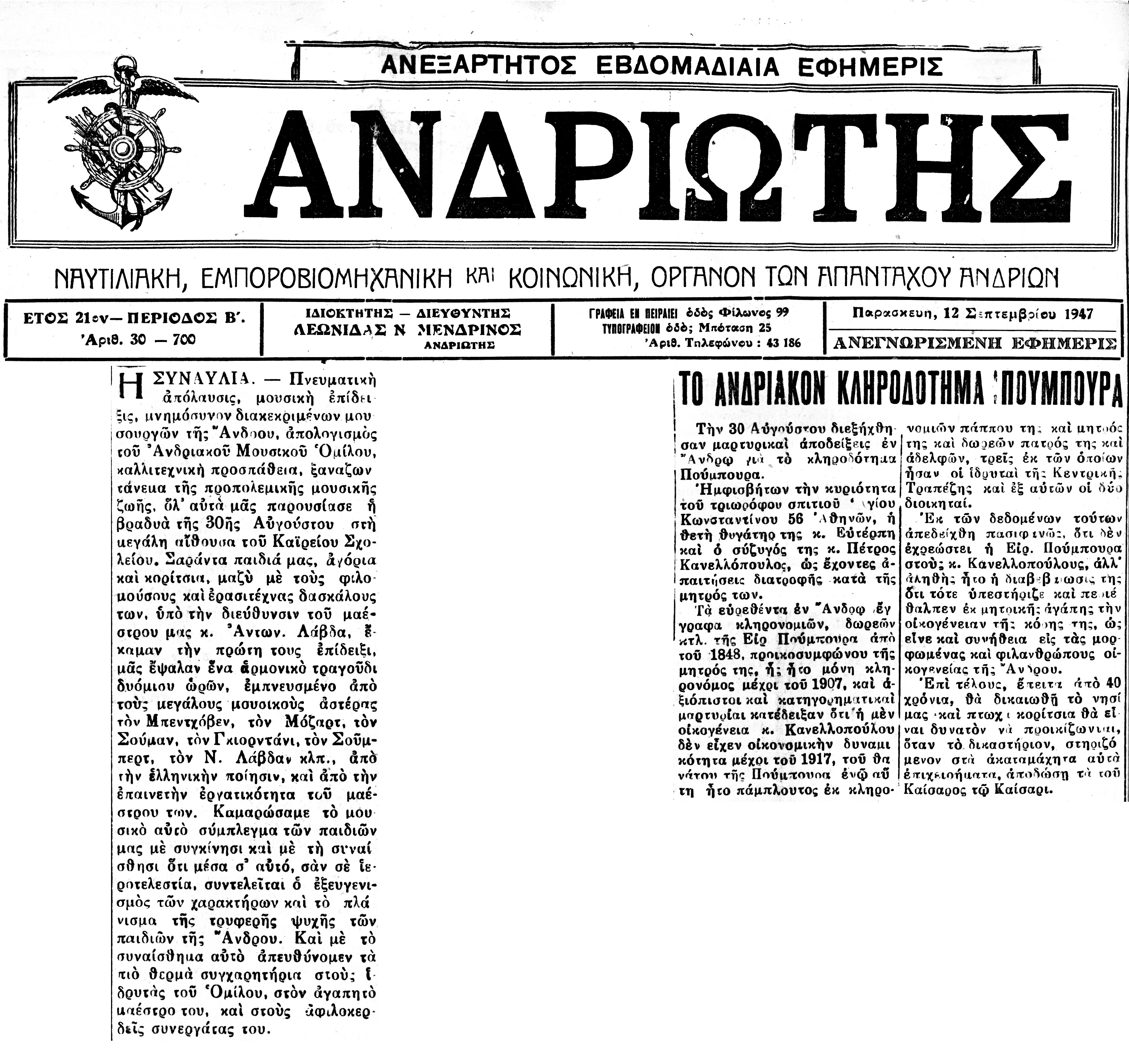 Η Φωνή τής ‘Ανδρου, 6 Σεπτεμβρίου 1947